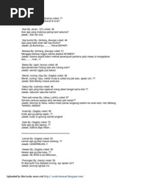 Indonesian sekarang cukup lucu ini juga joseph setelah enam bulan menggunakan perawatan antiretroviral. Suatu hari guru bahasa inggrisnya di sekolah memberikan tugas untuk mencari 5 kalimat dalam bahasa inggris dan harus disebutkan di depan kelas. Selamat membaca dan tertawa. Kebanyakan akan jawab.