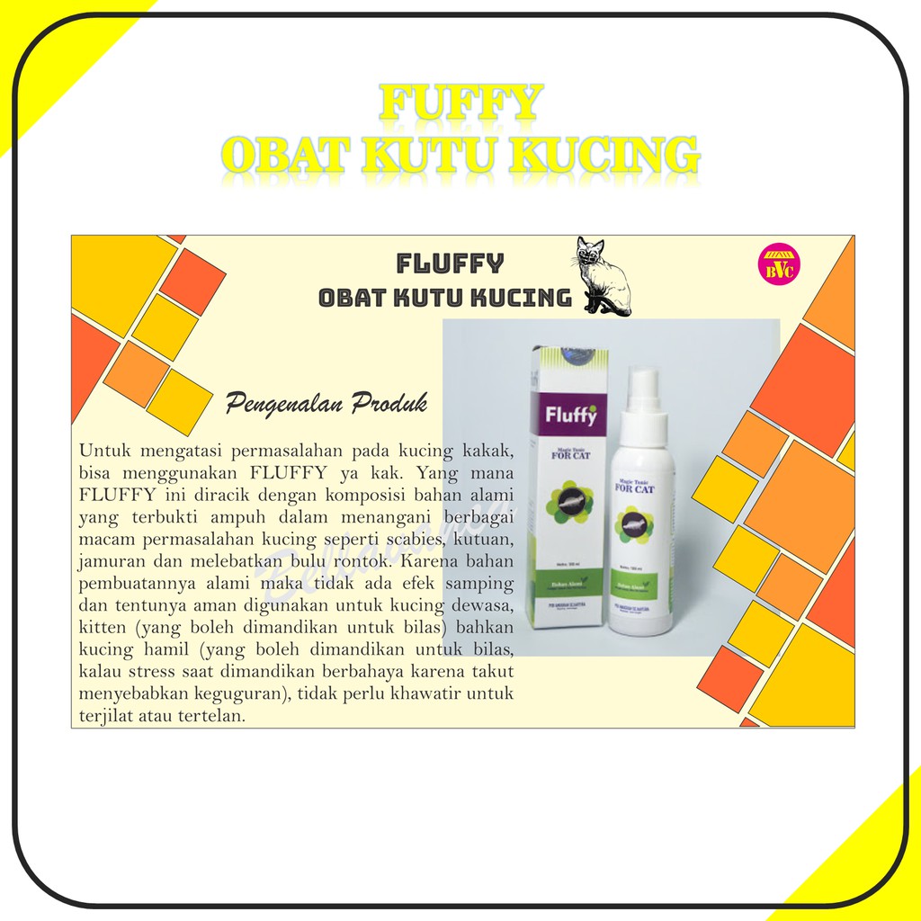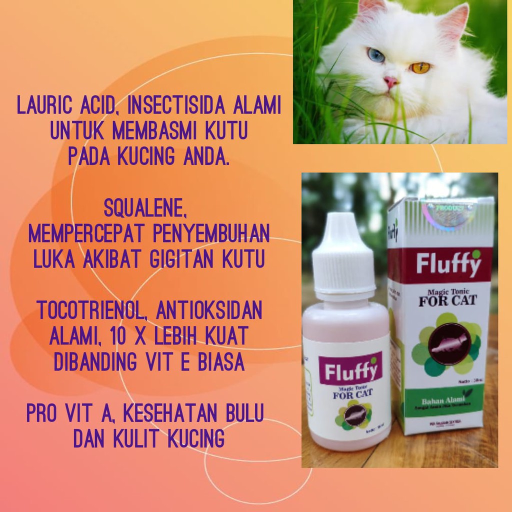 Fluffy obat kucing. Fluffy mampu menyuburkan dan melembutkan bulu kucing. Nih aku kasih rekomendasi obat untukmerawat bulu kucing namanya fluffy. Fluffy obat kutu dan jamur kucing. Fluffy tonic khusus yg diformulasikan untuk membasmi kutu jamur dan scabies pada kucing.