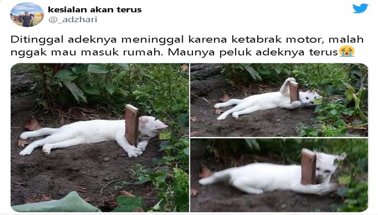 Aku 2 alami anehpertama kucing aku dapat kira2 usia 2 3 minguaan nemu dijalan karena lemas aku kasih makan food kucing dan disaranin baea dokter hewan setelab ke dokter hewan malah mati kucingku tengah malam kejang2 beberapa hari kemudian aku dapat lagi kucing tapj kadang eek darah disaranin kasih obat cacing kubeli di pet shopp. Entah kenapa skitar 6 bulan dia hilang. Ditinggal adiknya meninggal karena ketabrak motor tulis atadzhari dalam unggahannya tersebut. Karena ketidaktahuan cara mengubur kucing kadang orang memilih untuk meninggalkan bangkai kucing begitu saja atau bisa kita istilahkan tabrak lari.