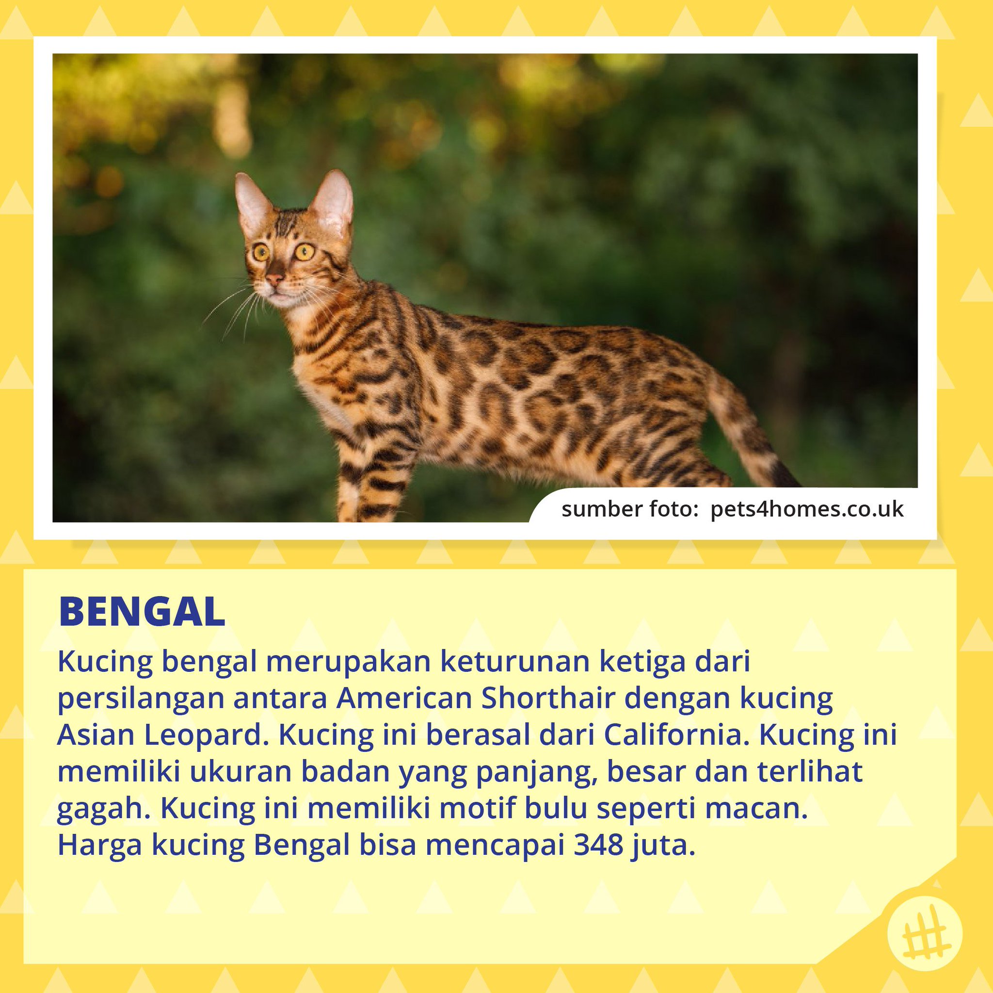 Kucing sendiri merupakan binatang yang banyak di jumpai di setiap daerah dengan berbagai spesies ataupun berbagai jenis. Namanya kucing bengal bengal ini mirip seperti savannah yaitu memiliki corak eksotis. Sesekali ajak kucing bengal bermain denganmu. Savannah telah dinobatkan oleh guinness world records sebagai ras kucing terpanjang di dunia dengan panjang 171 inci atau sekitar 44 cm.