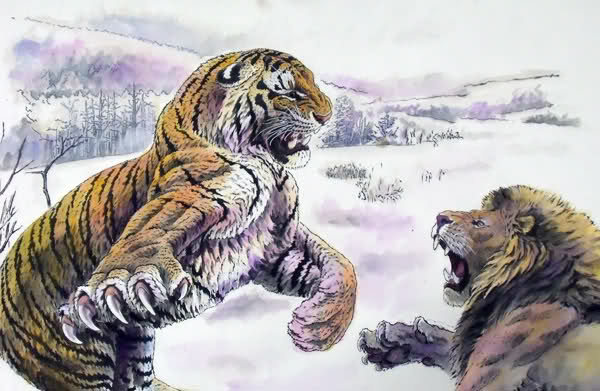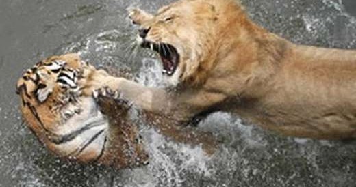 Disebutkan bahwa jika singa dan harimau diadu maka orang orang akan lebih sering bertaruh untuk kemenangan harimau daripada singa. Pada zaman romawi colosseum sering mempertunjukkan pertarungan antara singa afrika dan harimau asia untuk menghibur penonton. Home sains siapa yang menang jika harimau bertarung melawan singa. Harimau belang lawan kucing.